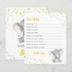 "Önskningar för bebis" kort för en gul och grå elefant-tema baby shower, sprinkle, födelsedag eller ett annat tillfälle. Texten är helt anpassningsbar. Matchande skylt kan också beställas. Tillverkad för att matcha vår Gul och Grå Elefant Kollektion.