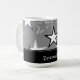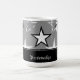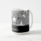 Njut av morgonkaffet med den här moderna designen mugg som har en onyx-stjärnexplosion, grått-texturerad bakgrund av stål med en elegant banderoll för personanpassning. Med anpassadets text kan du ändra typsnitt, ändra färg och storlek efter behov. Anpassa dig själv eller gör en underbar gåva.