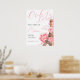 Ooh La La Paris välkomstskylt för bröllopsfest med Eiffeltornet och rosa blommande peonior och kalligrafiskrift.