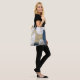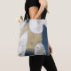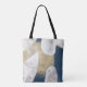 En stor abstrakt i marint blått täcker arbetsytan kant till kant med skärningar som visar en texturerad vit bakgrund. Ett slitet, texturerat beige område sitter över den blå formen medan vitt linjer vrider som rep i ett dynamiskt avsluta till biet.