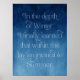 Den här teckningen har elegantens typografi i vitt på en vacker ombréblå vattenfärgsbakgrund. På poster står det: "På vinterns djup lärde jag mig äntligen att inom mig ljög jag en oövervinnelig sommar". Det påminner oss om att det alltid finns hopp och att vi kan göra hårt sak. Det är en underbar gåva till vem som helst.
