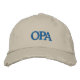 Broiderad hatt designad för Opa - tyskt farfar. Enkel textdesign i blått om familjeförhållanden för Lumirala.