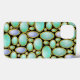 En söt opal brooch pendant mönster med guld-kedjor. Den här unika tryckta designen görs för att se ut som blåa opaler i turkos som ordnats i en sorts mosaik på en svart bakgrund med anpassade. Ovalformerna har ett ogenomskinligt utseende mor med pärlsnören med blått, grönt och vitt. Det är ett vackert, originellt mönster.