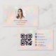 Showcase your personal brand with this modern opal business card featuring space for a photo and a custom QR code. The soft iridescent background and minimalist layout create a clean, professional look that’s perfect for social media managers, influencers, stylists, and creative entrepreneurs. Add your profile picture, social handles, and website for a cohesive digital-first impression. Fully customizable and print-ready for any modern professional.