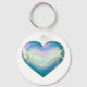Den här nyckelkedjan har ett ovalblått hjärta med ett satängutseende.