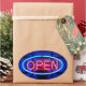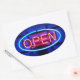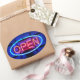 Oval sticker with an image of a blue and red neon “open” sign on black. The back is black with customizable text. See the entire Tubular 80s Sticker collection in the INVITES | Stickers & Labels section.
