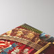 Scenen skildrar ett lyxigt och ornatbadrum med ett slående rött badkar som brännpunkt. Bathtub är försedd med tunn blommigt i skuggor av rosa och grönt, ge en vintage, nästan regalt utseende. Den står på noggrant dekorerad guldclawfoot-ben, vilket ökar dess populens betydelse. Vatten flödar från en klassisk, polerad krut till trumman och skapar en verklig ambians. Bakom badkaret finns ett stort, dekorativt fläkt med liknande motiv för blommigten, som förbättrar rummets sammanhängande estetik. Väggarna är också dekorerade med blommönstren, vilket kompletterar det övergripande temat elegans och skönhet. Golv verkar vara trä, med ett matta som är välmönstrat och som ger värme till inställningen. Kant i badkaret är en vit katt som heter Ophelia, med ett slående blått ögon, tittar vaksamhet och är nyfiken.