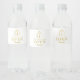 En vacker guldnyckel-husdesign som innehåller en vit och guld logotyp. En vacker vit modern affär öppen hus vattenflasketikett design. Ett enkelt och professionellt sätt att introducera ditt företag. Handtag för sociala medier ingår i designen av denna öppna hus-flasketikett. Anpassa dina detaljer för att skapa din egen unika design.