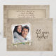 Inbjudan till öppet hus på 20-års bröllopsdag med gammaldags personlig fotoframställning och tusenskönabukett och pärlor.