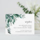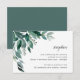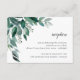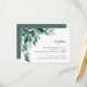Elegant botaniskt öppettkort med gröna akvarell-eukalyptusblad och lövverk med bläckfärgad, svartaktig kalligrafi och blockbokstäver. Personifiera med detaljer om din bröllopsmottagning, inklusive tidpunkt för evenemang, lokal och adress. Utformad för att matcha vår Abundant Foliage-inbjudningskollektion.