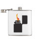 En typisk öppen och tänd cigarettändare med flamma i silhuett