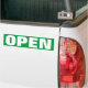 Öppna för affärsfönster, eller dörren undertecknar på vinylklistermärke. Också tillgängligt som stängt underteckna. Personalizable malltext och färg. Grönt och vit. Den behändiga varningssignagen för affären, företag, shoppar, kontorsbyggnad, restaurangen, beställnings- fara för Etc., varnar, och uppmärksamhet märker för huvudsakligt hänrycker eller går ut.