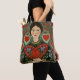 En öppen kvinna i en folkkonst stil omgiven av hjärtan och blommor med medkänsla i världen.