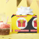 En illustration av en enkel röd presentlåda med texten "Öppna inte förrän jul", och svart bakgrund och gult strimlad bakgrund. Gåvor är den bästa ge överraskningen för din familj och dina vänner. Detta mönster är bra som ska tryckas på ett klistermärke eller en presentförpackning för presenter som placeras under Julgran.