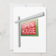 Den här designen är av en öppen husskylt. Den typen du skulle ha om du sålde ditt hus. Den öppna skylten är röd med vit text och fästs vid ett inlägg. Den här symbolen för öppna hus ser underbar ut för dessa inbjudningar