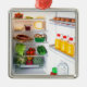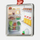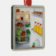 Öppna kylskåp fylld med mat julgransprydnad metall