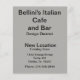 Flat Page Flyer för en italiensk Restaurant i Dallas, det vill säga Omlokalisering efter 17 år i Dallas Tx.