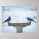 Jag fotograferade de här två hanarna Blue Jay på fågelmataren en kall vinter och snödag. Tittar du fler utskrifter eller produkter? Besök gärna min butik: http://www.zazzle.com/timelessmomentsphtgy Det här fotot togs av Jennifer White med Timless Moments Photography. Alla bilder är upphovsrättsskyddade © Timless Moments Photography.