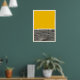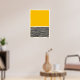Abstrakt med en optisk illusion påverkar med fet gult block, svart vågigt linjer och beige gräns.