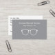 Mall för design av möteskort för optiker i modern stil med en glasögonbåge på framsidan och information om optometri på baksidan, inklusive en påminnelse om möte skapad för optiker, glasögonbutik eller ögonläkare.