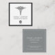 Ett minimalt Optometriskt affärskort med en medicinsk ledgångssymbol på ett enkelt svart, grått och vitt kvadratiska kort.