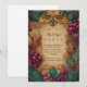 A luxurious Mardi Gras design featuring ornate scrollwork, lush grape clusters, and layered foliage in rich jewel tones. Inspired by vintage masquerade décor, the composition creates a warm, opulent atmosphere that feels timeless and refined. Ideal for elegant Mardi Gras parties, formal celebrations, or upscale themed soirées. Text is fully customizable to suit your event.