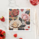 En rik texturerad och symbolisk målning med tre stora ro i skuggor av djup röd, mjuk rosa och gräddvit, var och en med tunna, tjocka petaler. Ro är omgivet av dramatiska löv av mörk med gyllene vener. Bakgrunden är uppdelad i tre lodräna: ett texturerat, skakande guld, mitten ett rent, texturerat vitt och det sista ett lodrät rand av texturerad vit och blek rosa. Hela sammansättningen accentueras med små, glansigt röda hjärtan spridda över hela kroppen. Bilden har en lyxig och dekadent känsla och kombinerar naturligt inslag med en djärv, grafisk och symbolisk design.