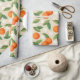 Orangar, Grönt Löv och vita blommor Mönster Presentpapper