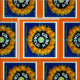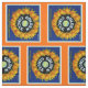 Orangar i gyllene cirkel tyg