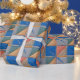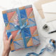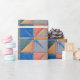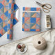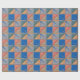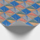 Vibrant geometric quilt featuring diagonally split squares in bold hues—blue, orange, pink, and green—creating dynamic symmetry and textured visual rhythm