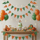 Happy birthday bunting flag in burnt orange and emerald green colors.