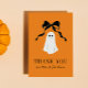 Det här hopfällda, pumpade tackkort-kortet för orange är perfekten att skicka tack efter en babydusch, födelsedag, party och mycket mer. Enkel att anpassa textställen nedanför ett sött, lycklig-litet spöke som ser snyggt ut under ett romantiskt svart band. Insidan av kortet är tom för att lägga till ditt personliga, handskrivna tackmeddelande.