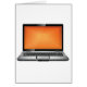 Denna design är en bärbar datordator. Bärbar dator är öppen, och skärmen av bärbar dator är all orange. Denna orange bärbar datordesign ser underbar