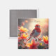 Vacker Orange Bird Blommig Magnet