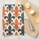 Orange Black Baroque Fleur-de-lis Mönster Design Kökshandduk