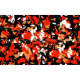 Vibrant kamouflage mönster i orange, ljusrost, vitt och svart.