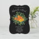 Vackra bröllopsinbjudningar i Orange och svart gotisk peony och ro blommigt med rikligt grönt. Perfekt för ett tema för blommigt eller för det traditionella vita bröllop i Vår eller Sommar. Anpassa färg och texten för att få bröllopet att bjuda in dig själv!