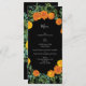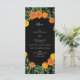 Orange & Black Gothic Peony & Ro Bröllop Menu Meny