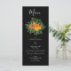 Orange & Black Gothic Peony & Ro Bröllop Menu Meny