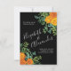 Vackra bröllopsinbjudningar i Orange och svart gotisk peony och ro blommigt med rikligt grönt. Perfekt för ett tema för blommigt eller för det traditionella vita bröllop i Vår eller Sommar. Anpassa färg och texten för att få bröllopet att bjuda in dig själv!