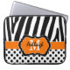 Den här orangen för chic och trendig personlig, svart och vitt zebra ränder och polka dots laptop sleeve har textrutor där du kan lägga till ditt namn och monogram. ***Skicka ett mejl till mig om du vill att en storlek SMALLER ska vara sammansatt, eftersom om du markerar den på egen hand kommer design- och textrutorna att glida fel. Om du behöver hjälp med att anpassa detta med din egen information kan du skicka e-post till niteowlstudio@gmail.com för hjälp.