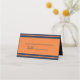 Placeringskort för orange och marinblått stripe födelsedagsfest bord.