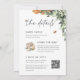 Eleganten och det vita biet med temat inbjudningskort för möhippa har en gräns av lush grönt botaniskt löv, blommor av vit orange blommar, honungskakor och en burk av honung med betande honungsbin. "gå med oss för en babydusch som hedrar föräldrarna att bli" visas i mitten med information om babyduschen under mjuk grått-skrift. Allt i en design eliminerar behovet av ett visitkort. använda texten fält på baksidan om du vill lägga till all information! Visas med en pappersraffel, bok-begäran och QR-kod för register.