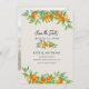 Land-jokertecken bröllop spara datum med ditt förlovning-foto. Utformningen har orangar, orangens blommar, grönt och hängande blad på neutraltens bakgrund. Färsk, osäker, naturlig utformning som kompletterar ett vår eller sommar-bröllop med ett orange-bröllop-tema. Om du vill koordinera inbjudningar, kontorsprogram, evenemangsdag och bord-tecken, spel och bröllop-tecken bläddrar du i min Orange Blommar Bröllop Collection eller meddelar mig om du vill lägga till ytterligare objekt som du behöver.