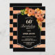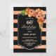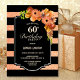 Svart och falskt glitter korallrandig blommig 60-års inbjudan till födelsedagsfest.