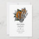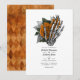 Whimsical vintage blommig gotisk skelett hand bröllopsinbjudan i orange och svarta accenter kan anpassas till dina evenemangsspecifikationer. Perfekt för alla teman eller trädgårdsbröllop. QR-koden på baksidan dirigerar till din bröllopssida där folk kan lära sig mer och svara.