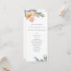 Denna eleganta botaniska bröllopsprogram har målade akvarellblad och blommor. Blommorna och grönskan är utförda i ljusa, dämpade orange, gröna och grå toner på en krispig vit bakgrund. Brudens och brudgummens namn och bröllopsprogrammets tidslinje är satta i ett klassiskt modernt sans serif-teckensnitt. Denna dubbelsidiga design är ett elegant boho-chic-val för vår-, sommar-, höst- eller vinterbröllop. Designad av Victoria från VG Invites. För att se mer, besök www.zazzle.com/vginvites