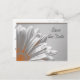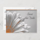 Sätt en elegant ton för din kommande vigsel med det vackra Orange Blommiga Höjdpunkter Bröllop Spara Datumet Annonsering Postkort. Detta klassiska anpassade blommiga äktenskap bevara datumkort har en digitalt förbättrad svart-vit blomfotografi av en gerbera tusenskönor med orange höjdpunkter tillagda och en silvergrå bakgrund.