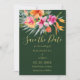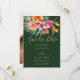 Det tropiska bröllop-projektet är perfekt för par som planerar ett sommar-, strand- eller destinationsbröllop. Kortet har en vacker och levande vattenfärgskonstruktion med tropiska blommor i skuggor av rosa och orange, vilket påminner om ett fantastiskt öparadis.