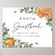 Fäst denna söta skylt i en ram för att påminna gästerna att skriva in sig i fotogästboken på bröllopsfesten, baby shower, könsrevealen eller födelsedagsfesten. Designad för att matcha vår Bröllopsfest kollektion med Orange Blossom Honey Bee, har denna chic naturinspirerade design grön akvarellbladverk, vita blommor, bikakor, honungsbin och ett glas honung. Anpassa instruktionerna för att styra gästerna att använda en direktkamera, underteckna fotot och placera det i er gästbok.